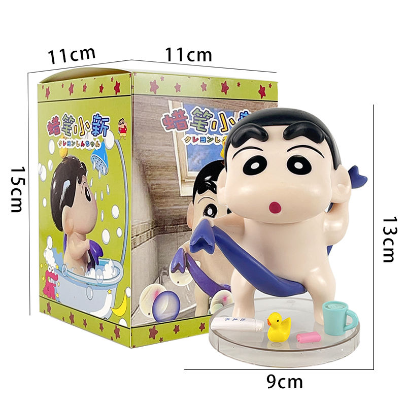 FYQC Anime Crayon Shin-Chan Decoration Taking Shower Figurine 13cm PVC Model Cartoon Action Figure Assembly Q Version Kids Gift