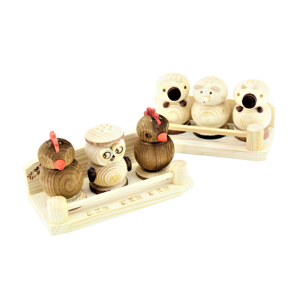 Fa Sószóró Figurás 3 Részes+Fatartó