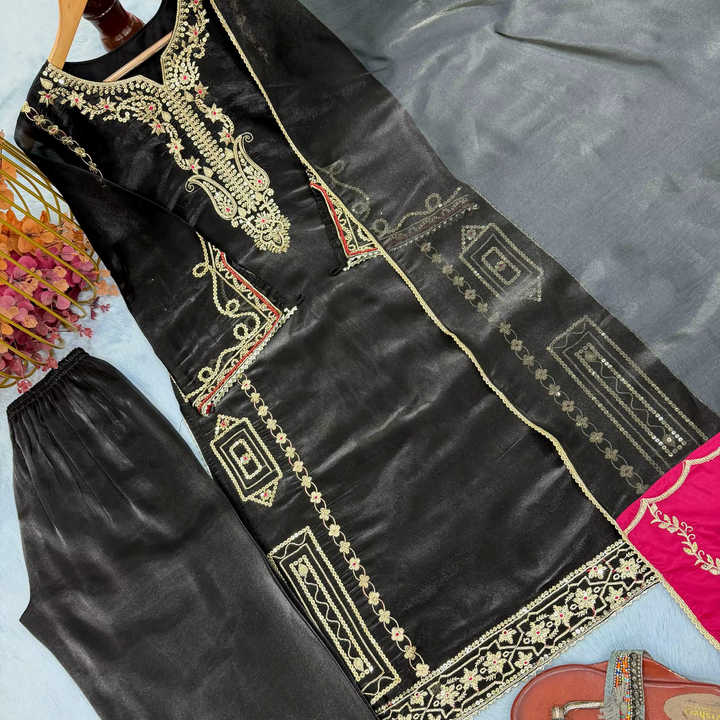 ชุดเสื้อปักลายผ้าประดับเลื่อม 5 มม. พร้อมกางเกงพลัสโซ่และผ้าคลุมไหล่ ตัดเย็บสำเร็จ ไซส์ M L XL และ XXL สำหรับผู้หญิง