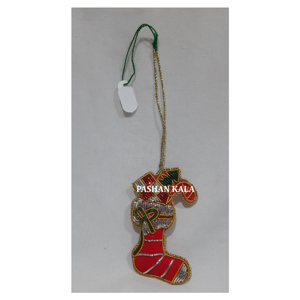 วัสดุผ้าปัก zari ต้นคริสต์มาสแขวนเครื่องประดับรูปรองเท้าสีกุหลาบแมดเดอร์ที่ใช้สำหรับอุปกรณ์ตกแต่งงานปาร์ตี้