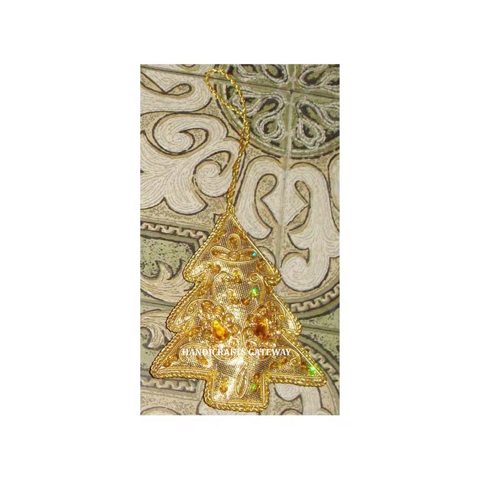 วัสดุผ้าปัก zari รูปทรงต้นคริสต์มาสแขวนประดับดีไซน์สร้างสรรค์ของตกแต่งบ้านที่กว้างขวางมาก