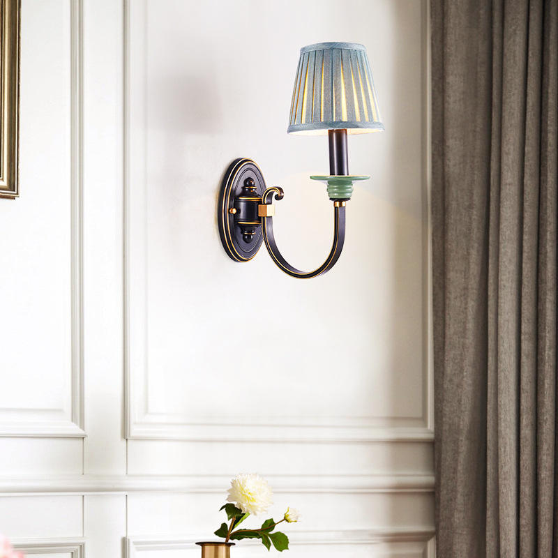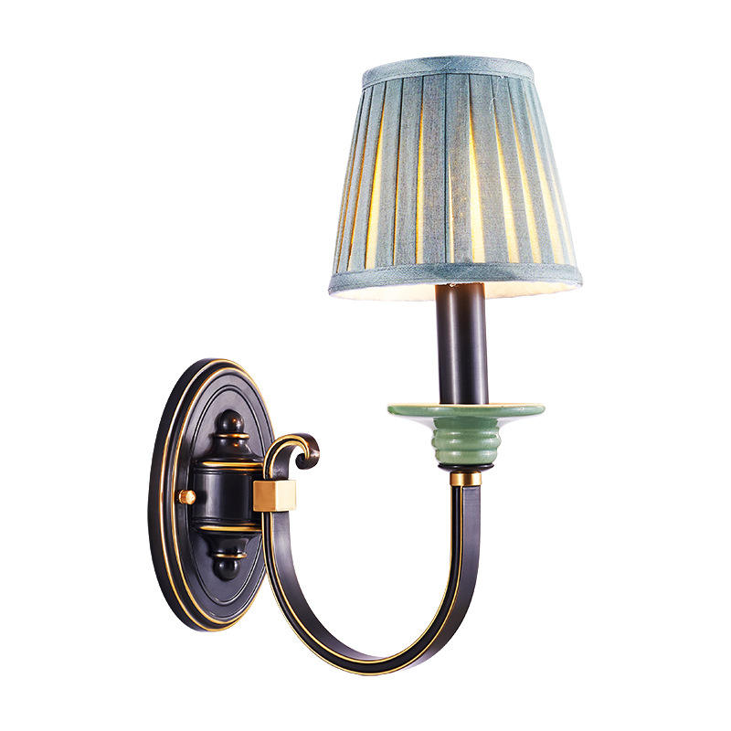 โคมไฟติดผนังผ้าสไตล์โมเดิร์น ไฟ LED แนวคันทรีอเมริกัน สีบรอนซ์ทองแดงหยก แสงวอร์มไวท์ 3500K สำหรับตกแต่งห้องครัว ห้องนั่งเล่น KARO