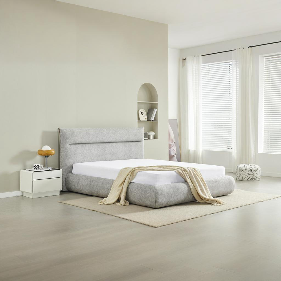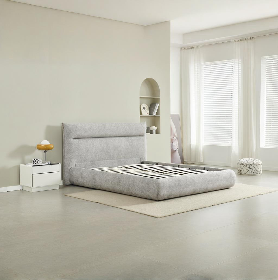 โครงเตียงหุ้มผ้าแบบยกได้พร้อมที่เก็บของ ระบบไฮดรอลิก รองรับด้วยแผ่นไม้แบบไร้เสียง