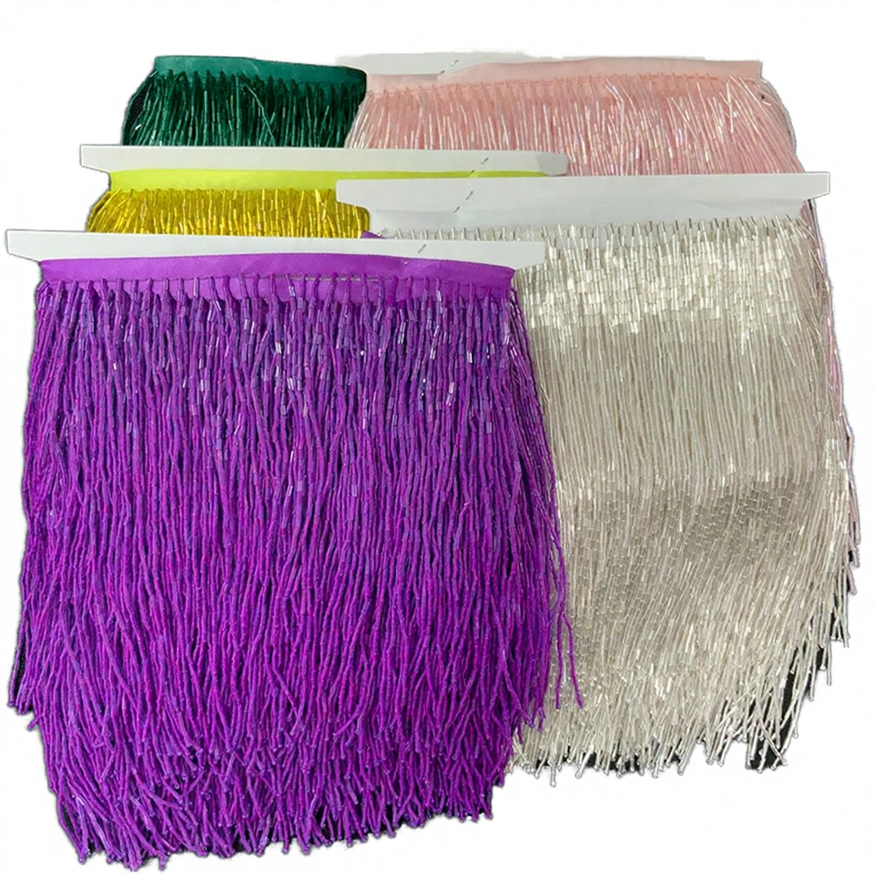 พู่ห้อยประดับลูกปัดแก้วขนาด 14 ซม. สวยงาม ตกแต่งด้วยลูกปัดเม็ดเล็ก เย็บมือ สำหรับใช้ตกแต่งสิ่งทอภายในบ้าน