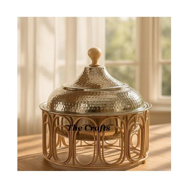 ถาดอุ่นอาหารสแตนเลสแบบคลาสสิกพร้อมขาตั้งและฝาปิดแบบแขวนสำหรับร้านอาหารบุฟเฟ่ต์