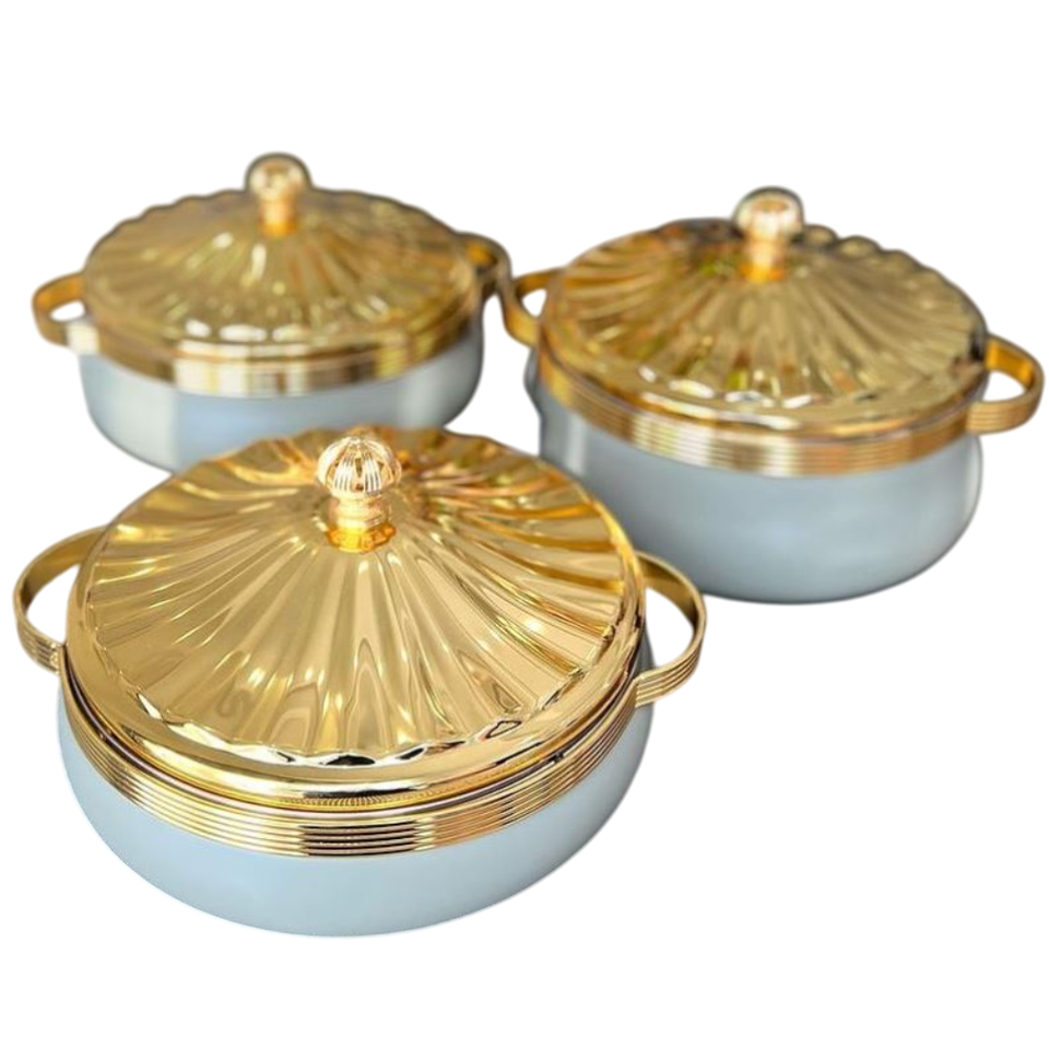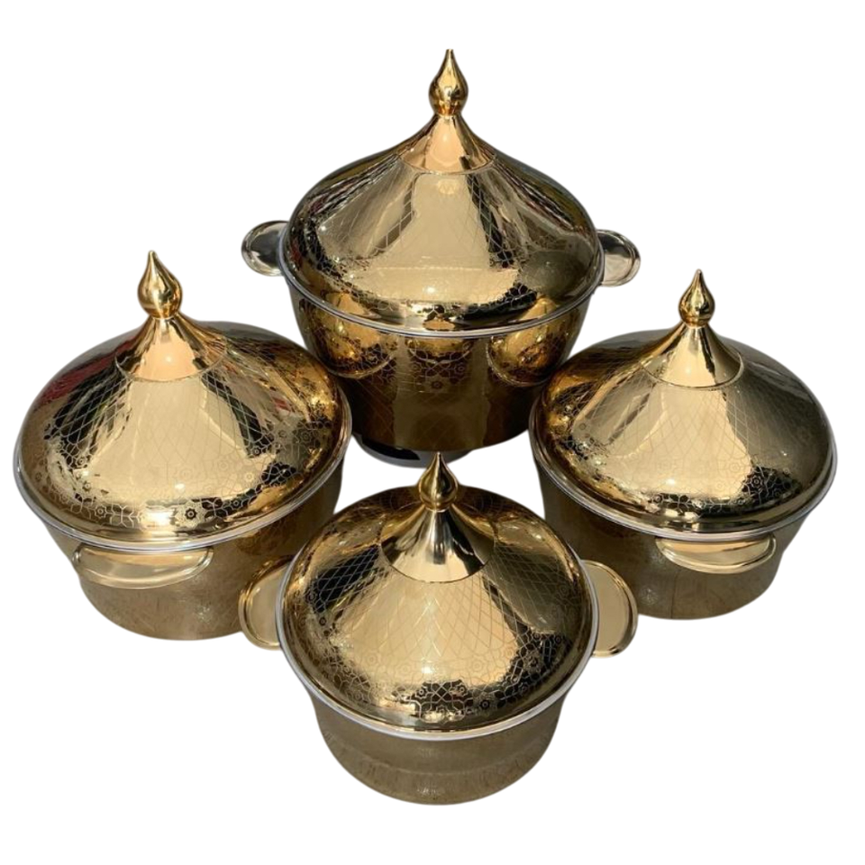 หม้อปรุงอาหารสแตนเลสสตีลสุดสร้างสรรค์พร้อมฝาปิดด้านบนสีทองสำหรับตกแต่งโรงแรม