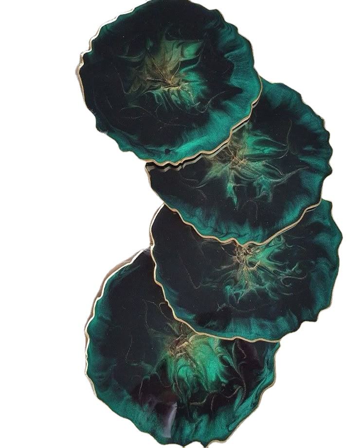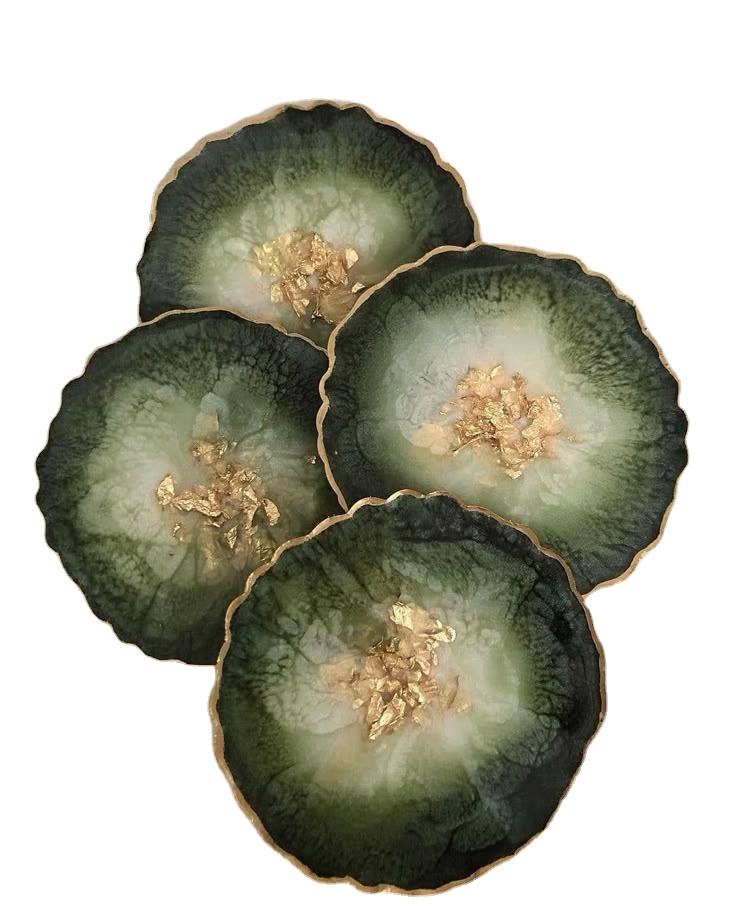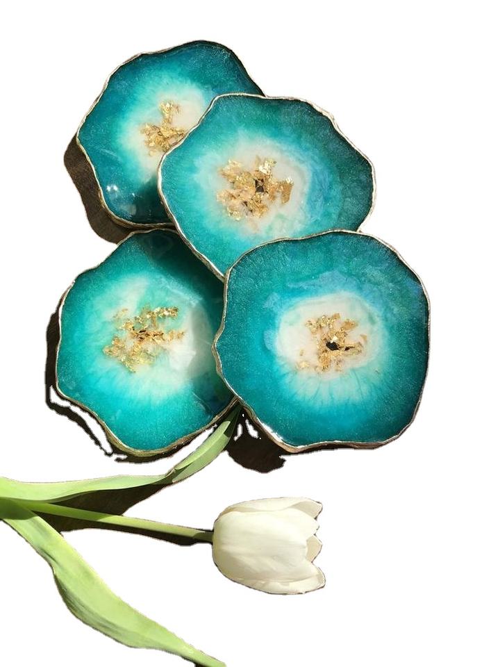 ชุดถาดรองแก้วทำจากเรซินออกแบบยอดเยี่ยมชุดถาดรองแก้วทำจากแก้วทำจากยางเรซินรูปร่างพิเศษ