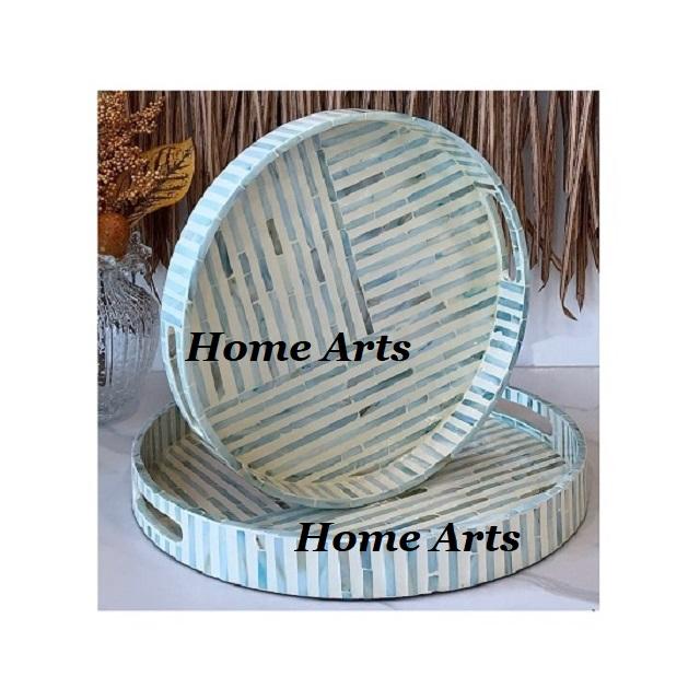 ถาดเสิร์ฟอาหารงานไม้และมุกถาดใส่ขนมหวานทรงกลมคุณภาพดีที่สุด