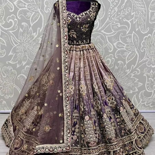 Lehenga choli ผ้ากำมะหยี่ปักลายอย่างยอดเยี่ยมในงานแต่ง