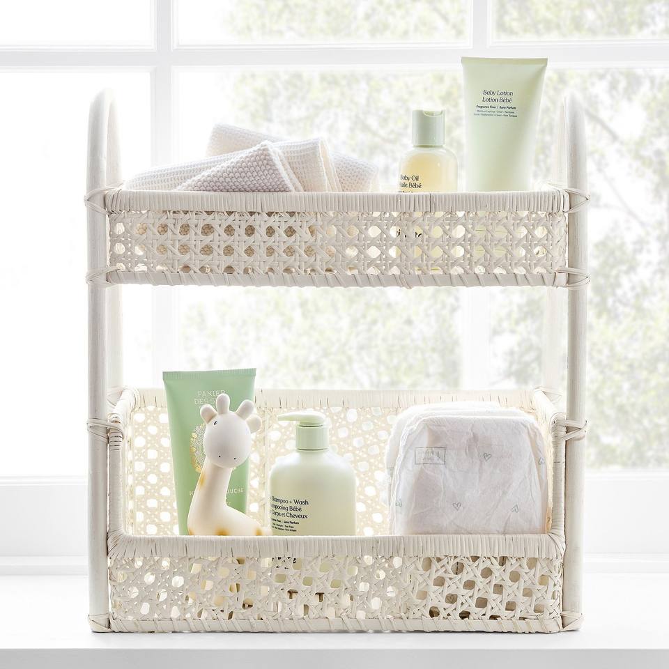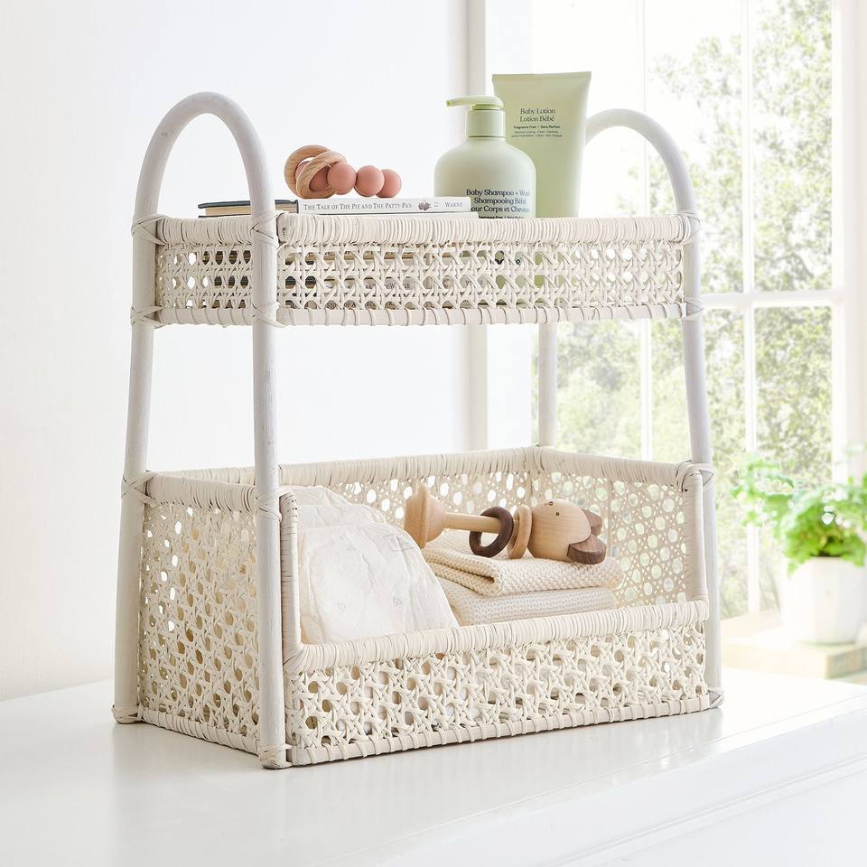 ตะกร้าหวายเก็บของสองชั้นสุดหรู ตะกร้าเก็บของตกแต่ง ตะกร้าจัดระเบียบหวายธรรมชาติ เหมาะสำหรับเก็บของในห้องน้ำ