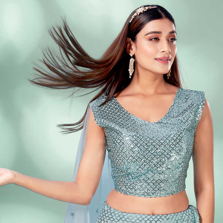 Fabzone เสื้อครอปพื้นเมืองพรีเมี่ยมของอินเดียชุดปาร์ตี้พร้อมทำจากผู้ผลิตโดยตรงหมายเลขรุ่น lehenga choli