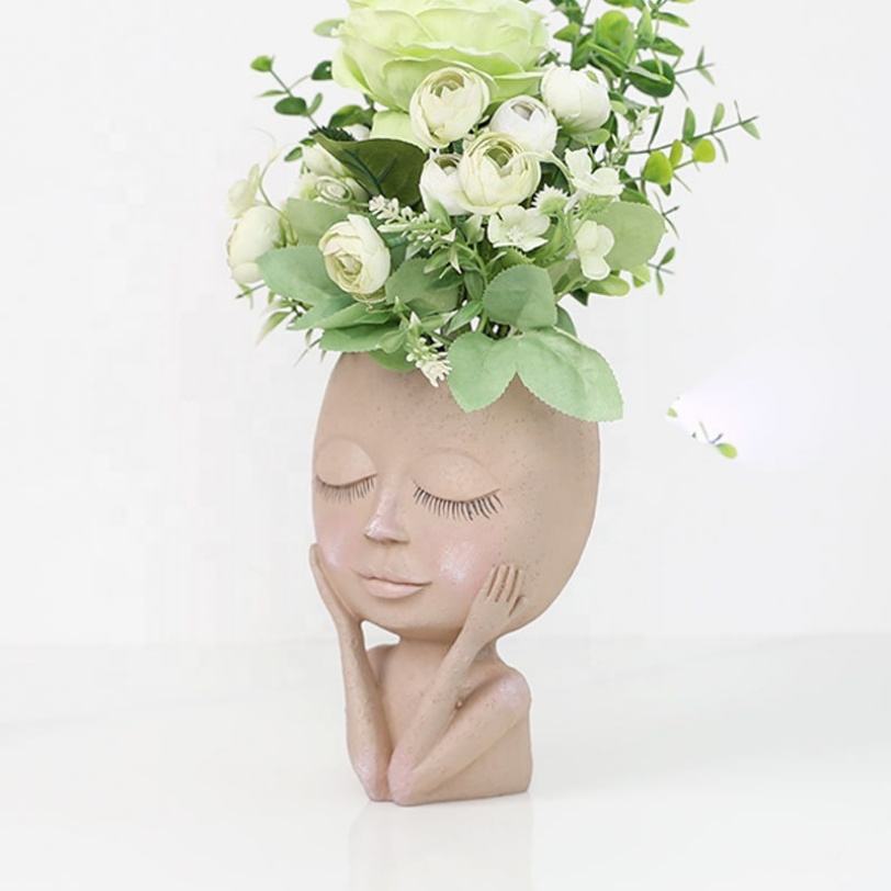กระถางต้นไม้รูปหน้าคน กระถางเรซิ่นน่ารักสำหรับปลูกแคคตัสและไม้อวบน้ำ มีรูระบายน้ำ ตาปิด