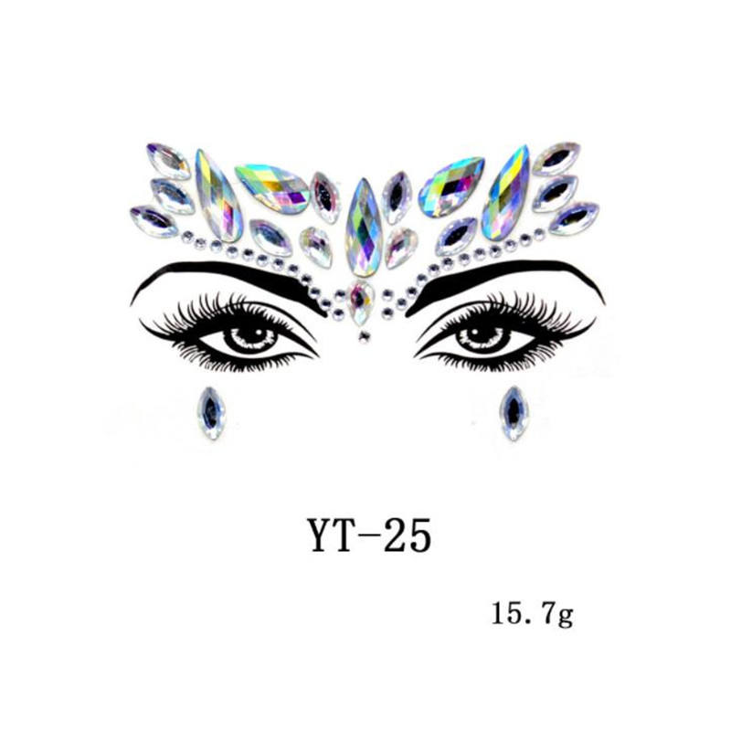 สติกเกอร์อัญมณีสำหรับใบหน้าแบบมีกาวในตัวสำหรับแต่งหน้าติดบนใบหน้าด้วยเม็ดเพชรสีแบบแฟนซี