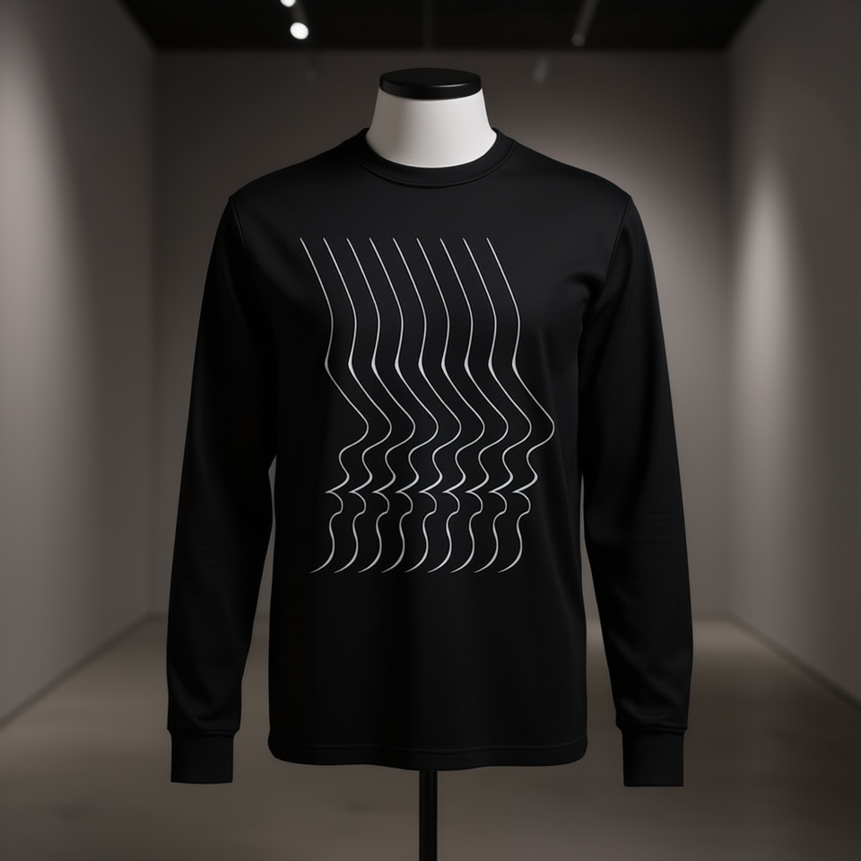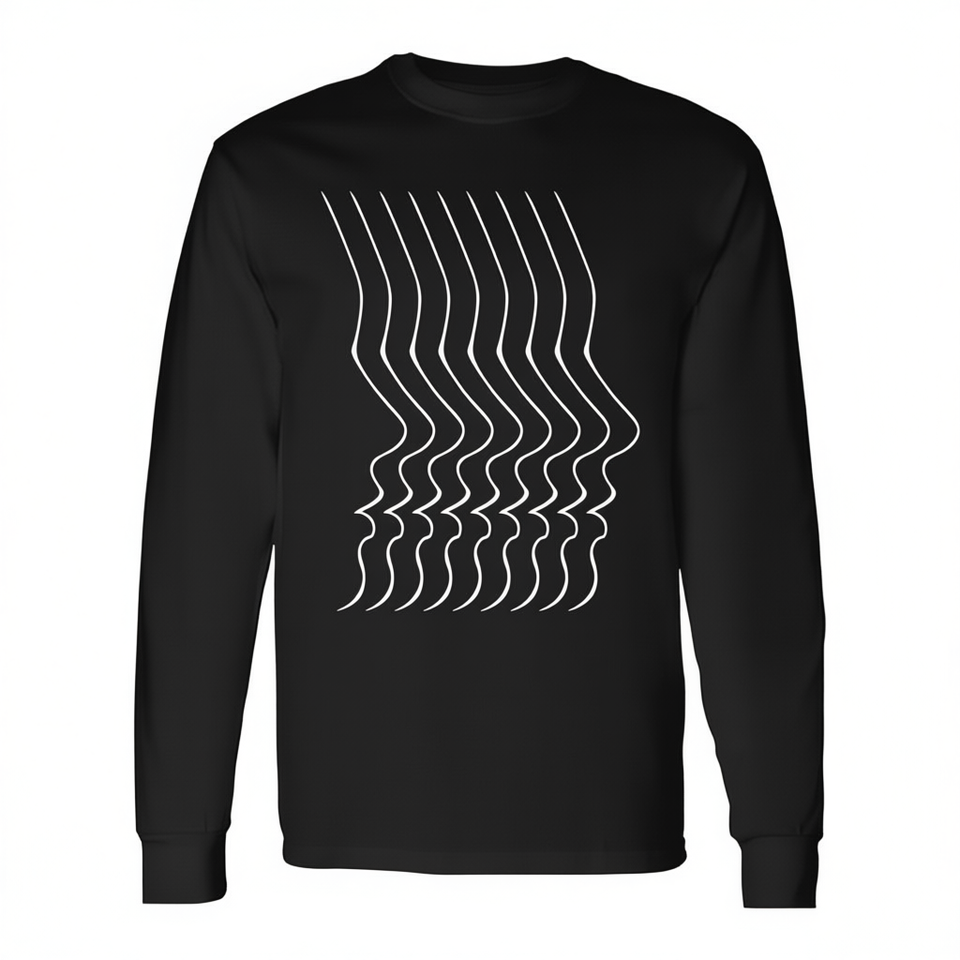 เสื้อยืดแขนยาวลายพิมพ์ศิลปะนามธรรม "Faceless Pain" สีดำ ดีไซน์มินิมอล สวมใส่ได้ทั้งชายและหญิง แฟชั่นศิลปะที่สะท้อนความงาม