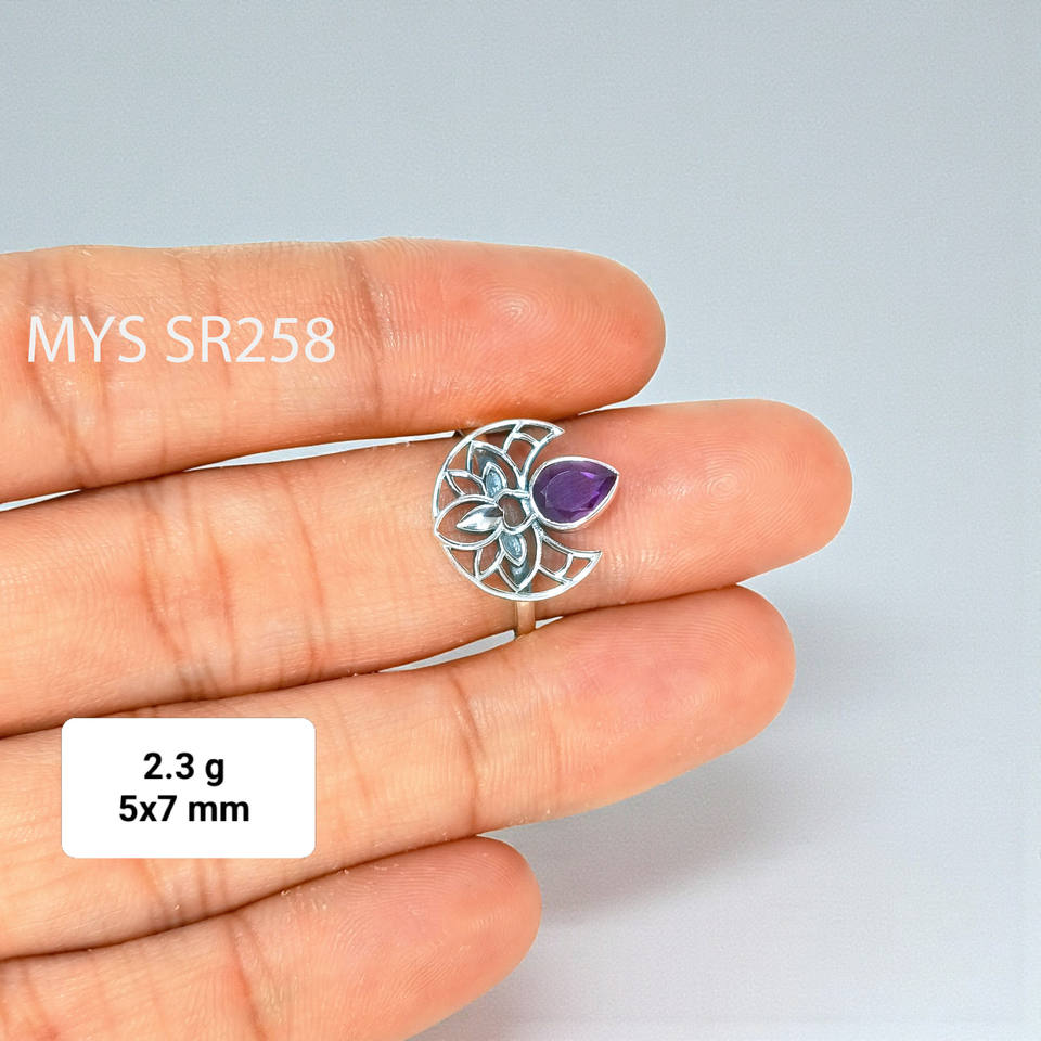 แหวนพลอยอเมทิสต์ทรงเหลี่ยมเจียระไน แหวนเงินแท้ 925 ทำมือ ราคาขายส่ง เครื่องประดับเงิน
