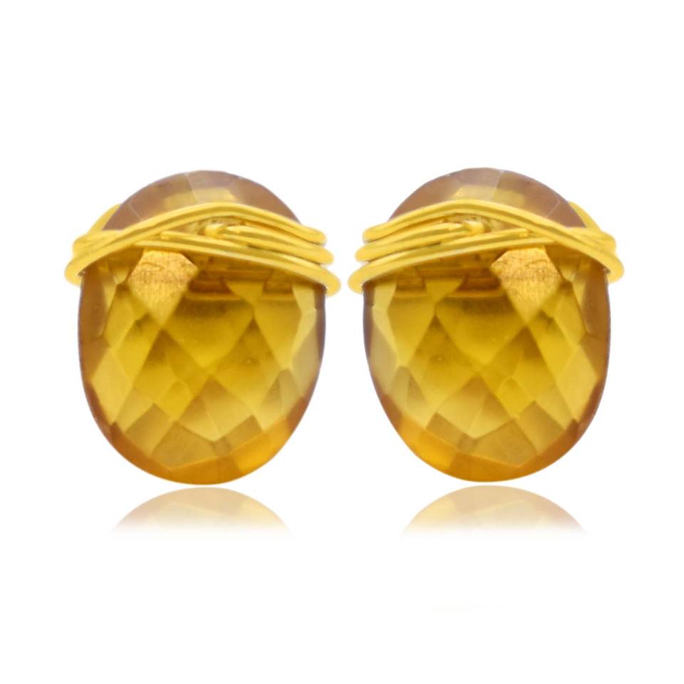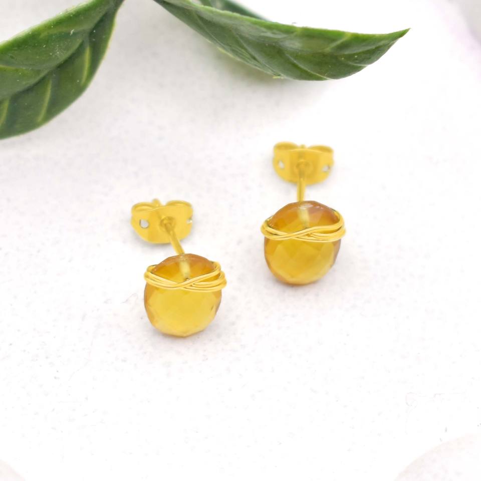 ต่างหูทรงรีประดับพลอยซิทรินควอตซ์เจียระไน งานแฮนด์เมด หุ้มด้วยลวด