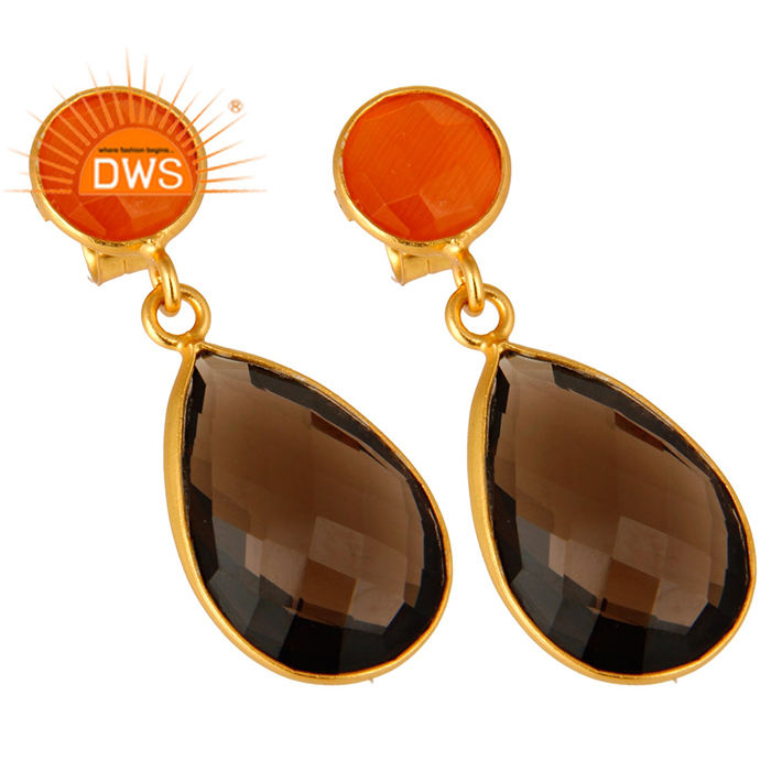 ต่างหูควอทซ์แบบเหลี่ยมเพชรพลอยตัดเป็นก้อนต่างหูชุบทอง14K สำหรับสตรีเครื่องประดับคอลเลกชันคลาสสิก