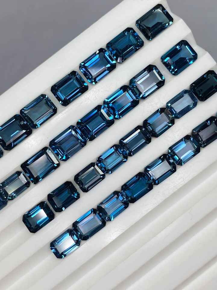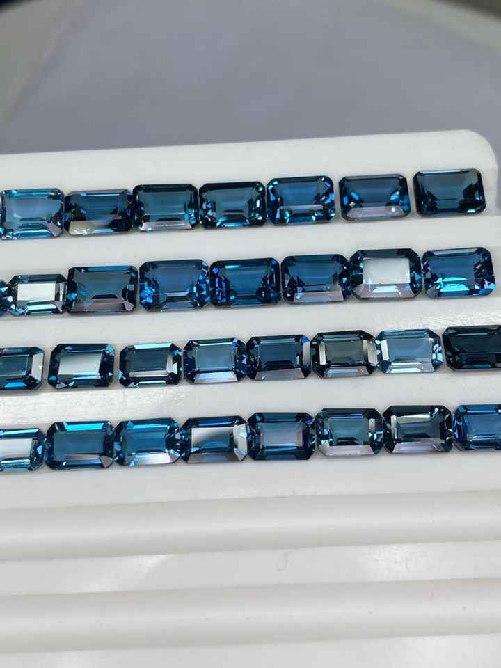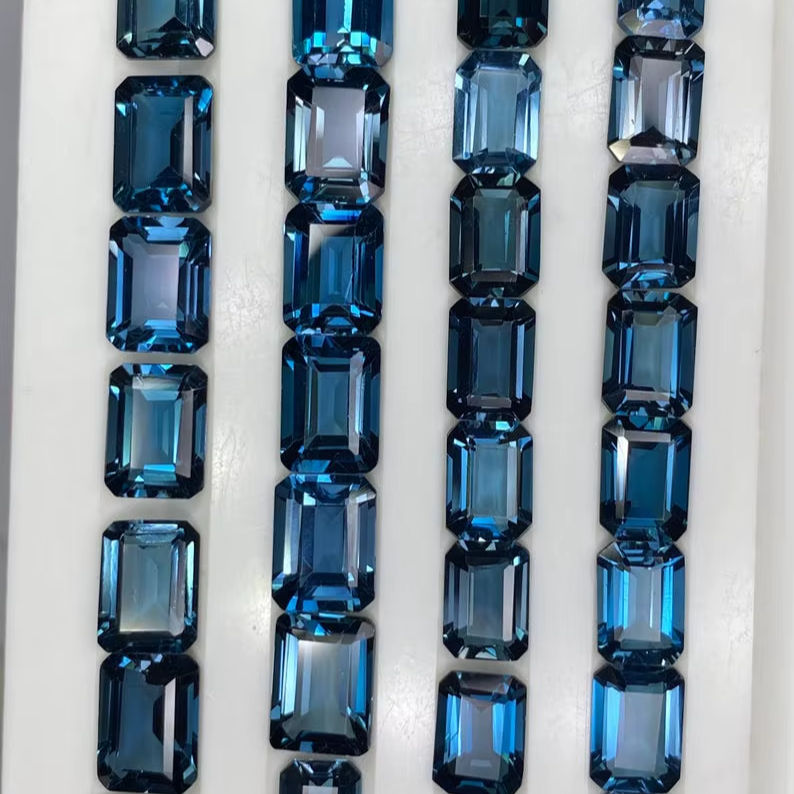 พลอยโทแพซลอนดอนบลูทรงแปดเหลี่ยมเจียระไน ขนาด 6x4 มม. ถึง 10x12 มม. สำหรับทำเครื่องประดับ