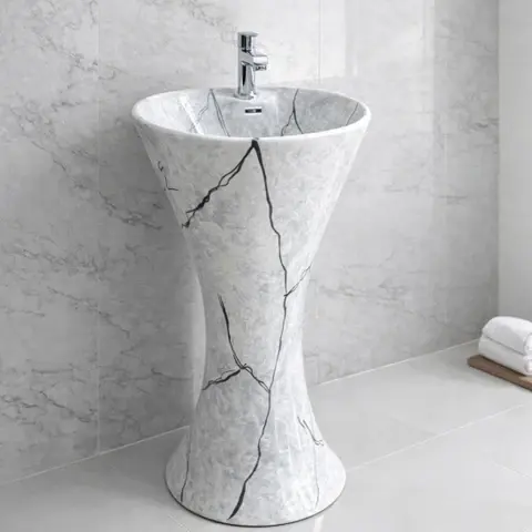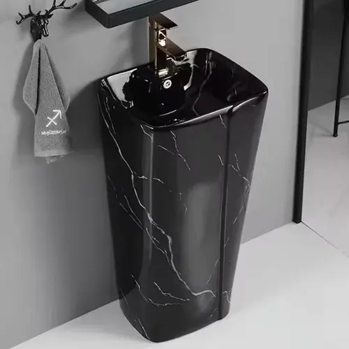 อ่างล้างหน้าหินอ่อนทรงเหลี่ยมพร้อมฐานตั้ง ดีไซน์ทันสมัยแนวตั้ง เหมาะสำหรับโรงแรม เป็นมิตรกับสิ่งแวดล้อม พร้อมที่ระบายน้ำแบบรูเดียว