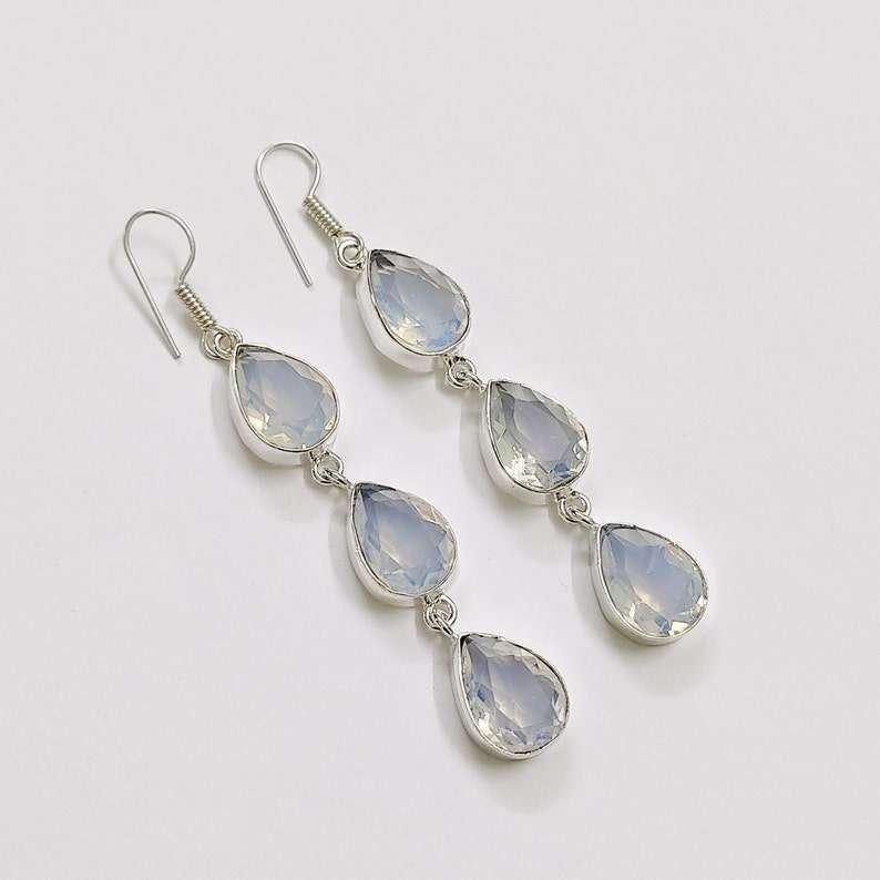 ต่างหูหินโอปอลหลายเหลี่ยมเพชรพลอย925ชุบเงินห้อยทำด้วยมือ Boho ของขวัญเครื่องประดับลวดสำหรับแม่หรือเธอ