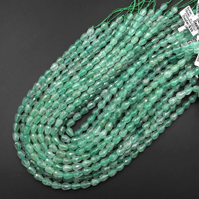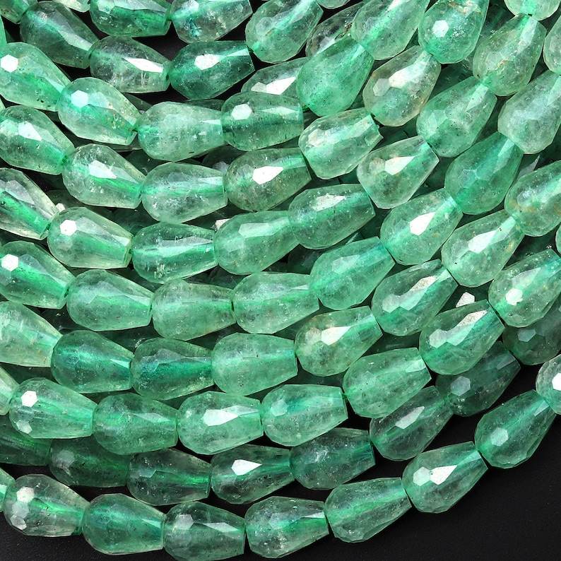 ลูกปัดหยดน้ำทรงเหลี่ยมจากแอฟริกันกรีนแคลซิโดนีธรรมชาติ คุณภาพ AA+ เปลี่ยนสีได้ รับรองโดยบุคคลที่สาม พลอยทรงตั้ง