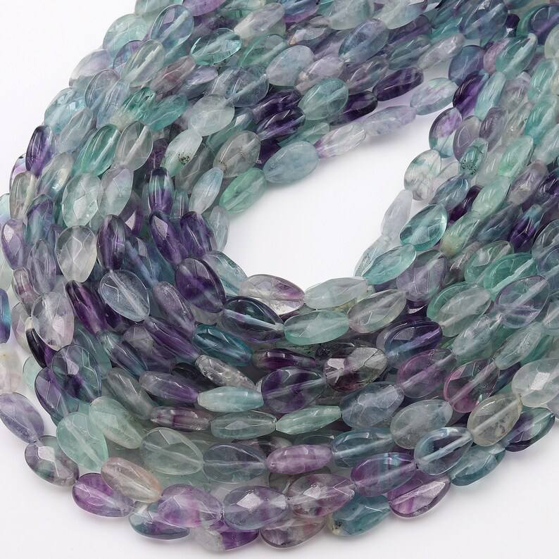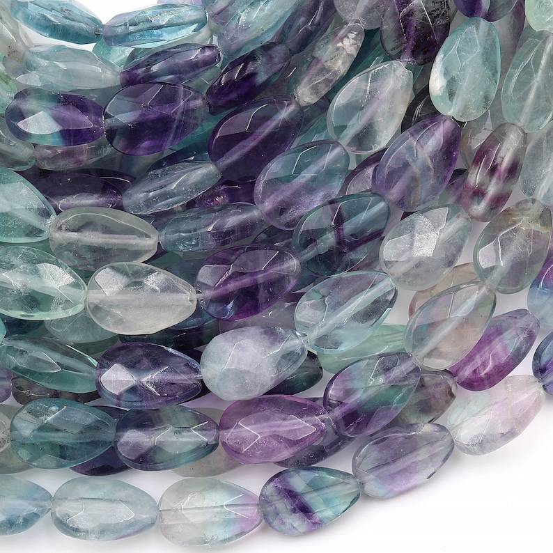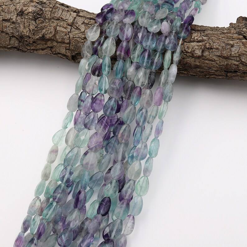 ลูกปัดฟลูออไรต์ทรงหยดน้ำเจียระไนแบบธรรมชาติ เจาะรูแนวตั้ง สำหรับทำเครื่องประดับ DIY อุปกรณ์งานฝีมือ ลูกปัดอัญมณี