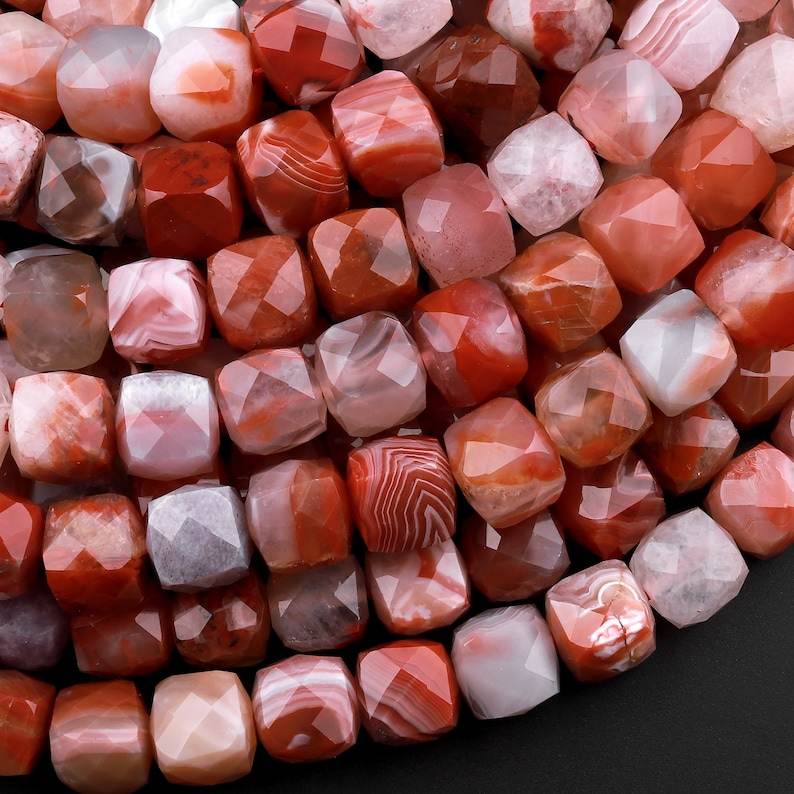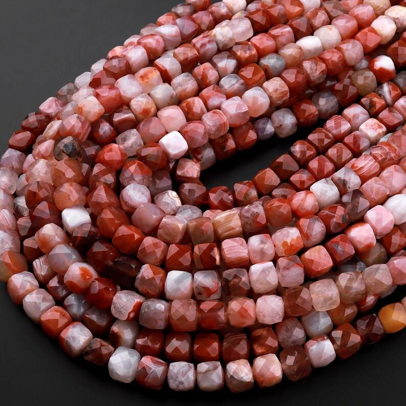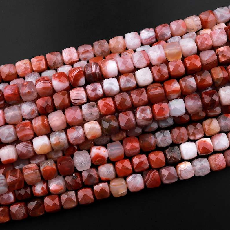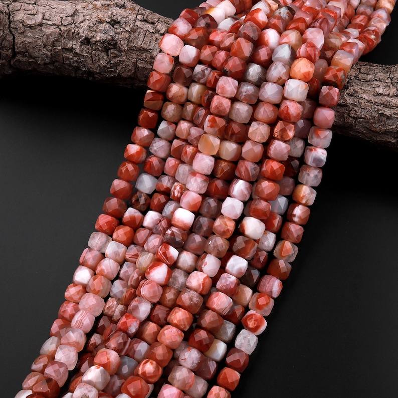 ลูกปัดอาเกตสีแดงธรรมชาติทรงลูกบาศก์จากโมร็อกโก สำหรับทำเครื่องประดับ DIY อุปกรณ์งานฝีมือ ลูกปัดอัญมณี
