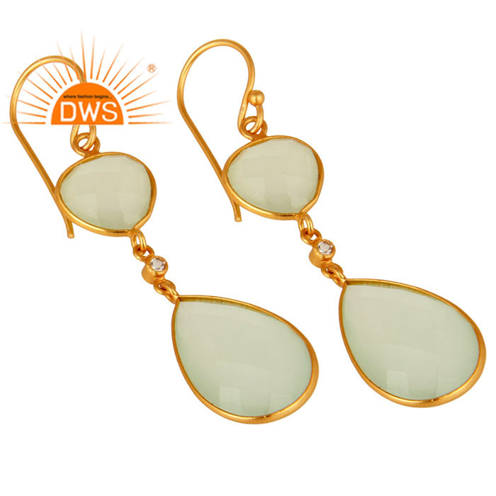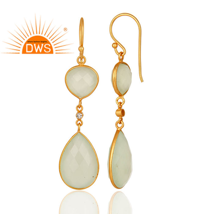 925พลอยคาลซิโดนีสีเขียวประดับเพชรพลอยชุบทองหลายเหลี่ยม