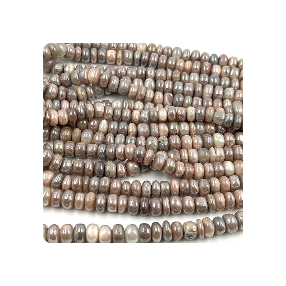 ลูกปัดมูนสโตนสีพีชทรงรอนเดลล์คุณภาพพรีเมียมจาก Alif International ขนาด 7-8 มม. - 8 นิ้ว ร้อยเป็นเส้นเรียบสำหรับทำเครื่องประดับ สีชมพู
