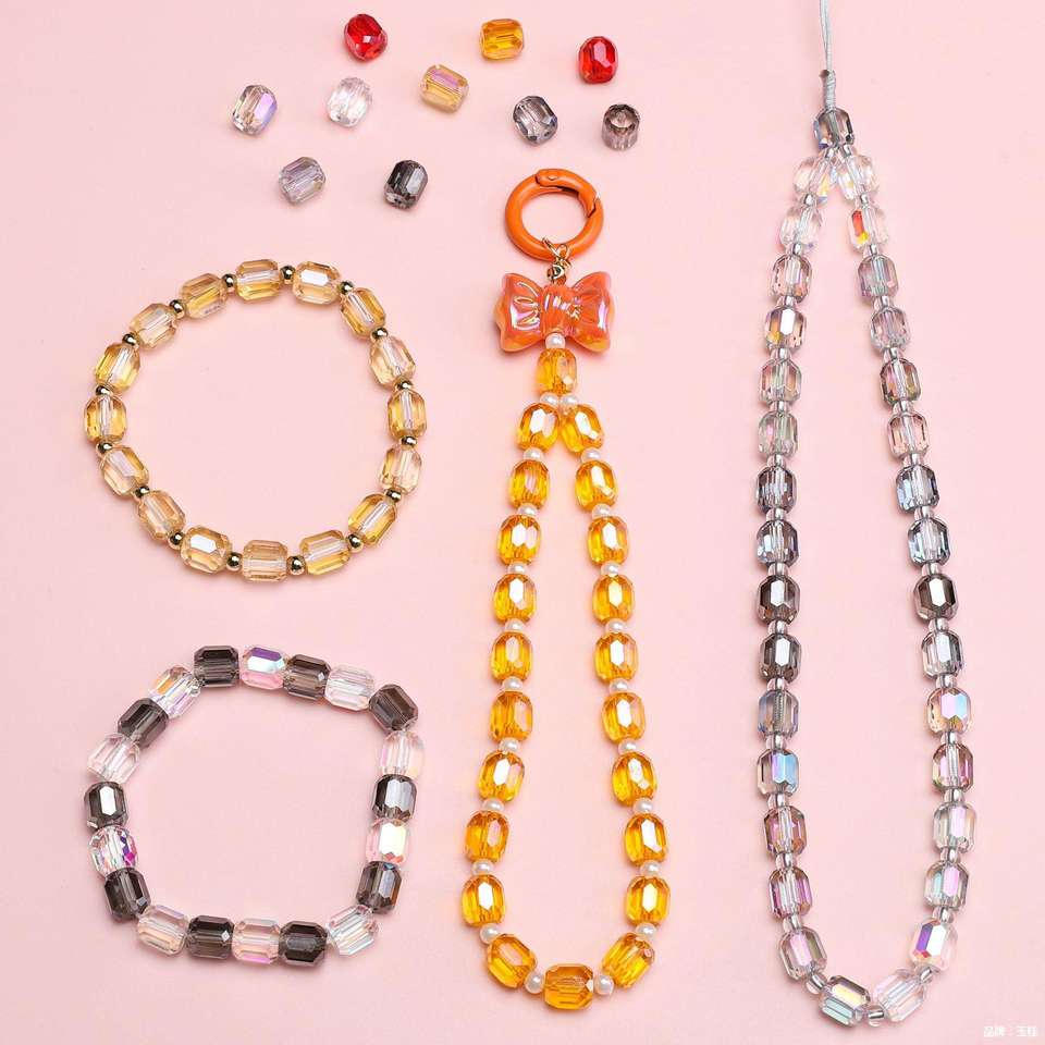 ลูกปัดแก้วคริสตัลกลมเหลี่ยมเพชรพลอยสำหรับทำเครื่องประดับแบบทำมือตกแต่งสร้อยคอลูกปัดรูปทรงกลองรูใหญ่