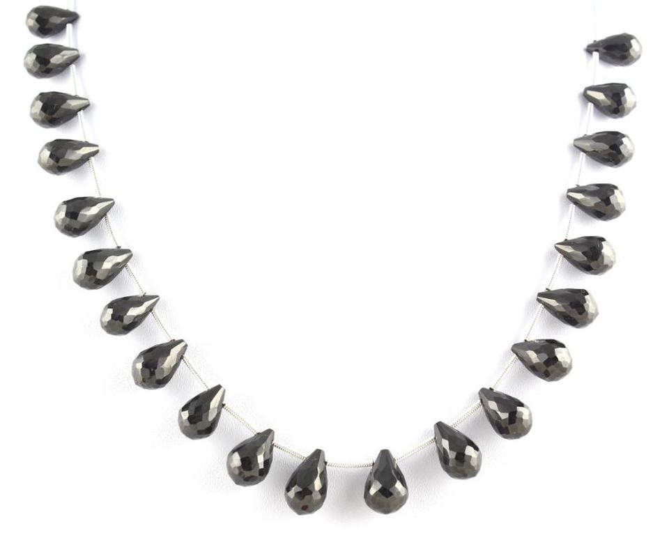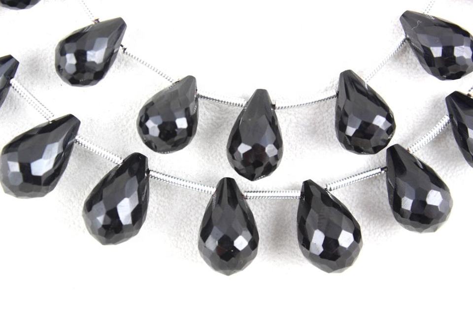 ลูกปัดพลอยบริโอเลตต์พลอยธรรมชาติสีดำทรงหยดน้ำเหลี่ยมเพชรพลอย