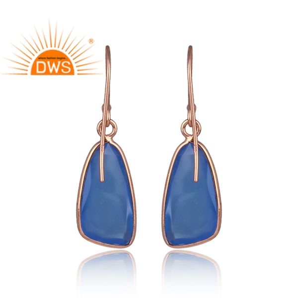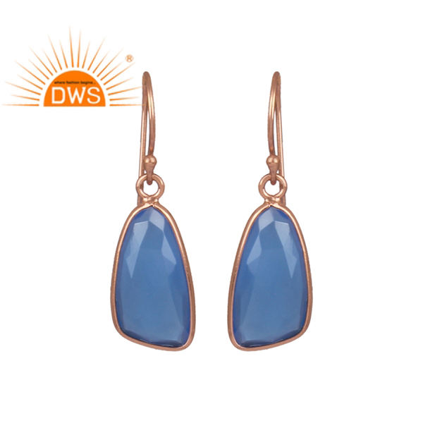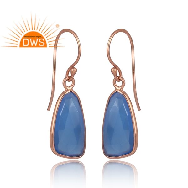 Faceted White Chalcedony Gemstone Trendy Dangle Earrings Rose Gold Plated 925 Sterling Silver Drop Earrings for Party Gift