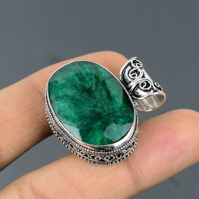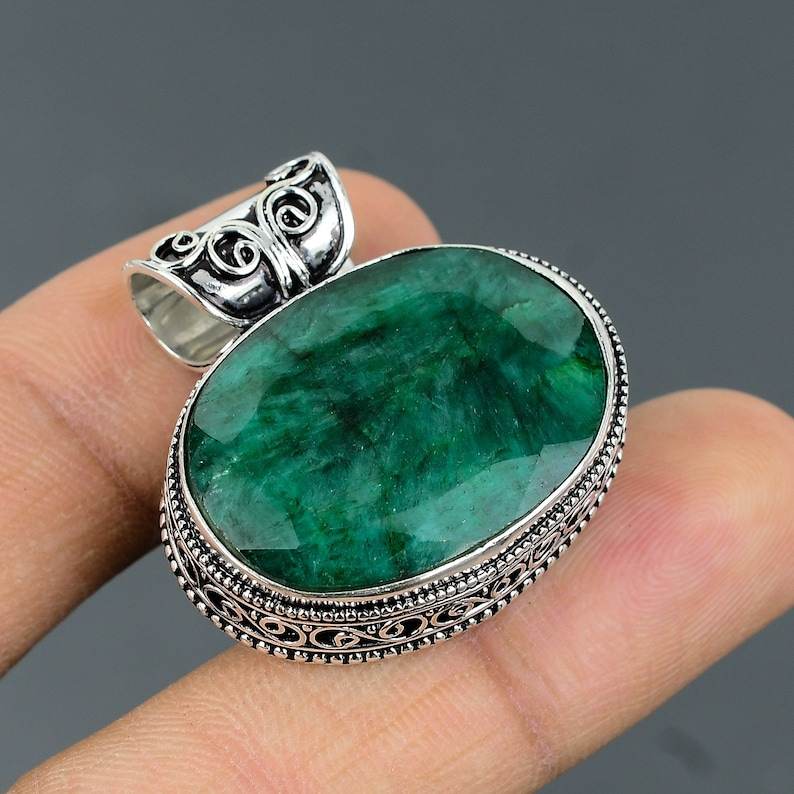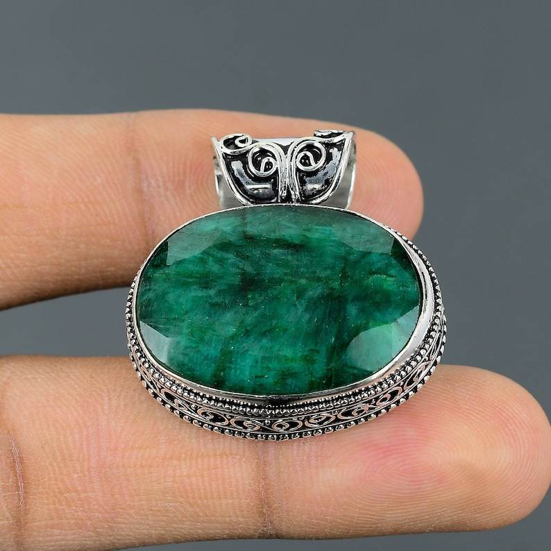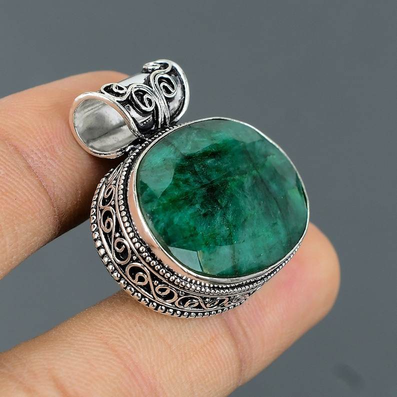 จี้มรกตแซมเบียทรงเหลี่ยม เครื่องประดับเงินแท้ทำมือ สร้อยคอพลอยธรรมชาติสุดหรู ของขวัญสำหรับเธอ