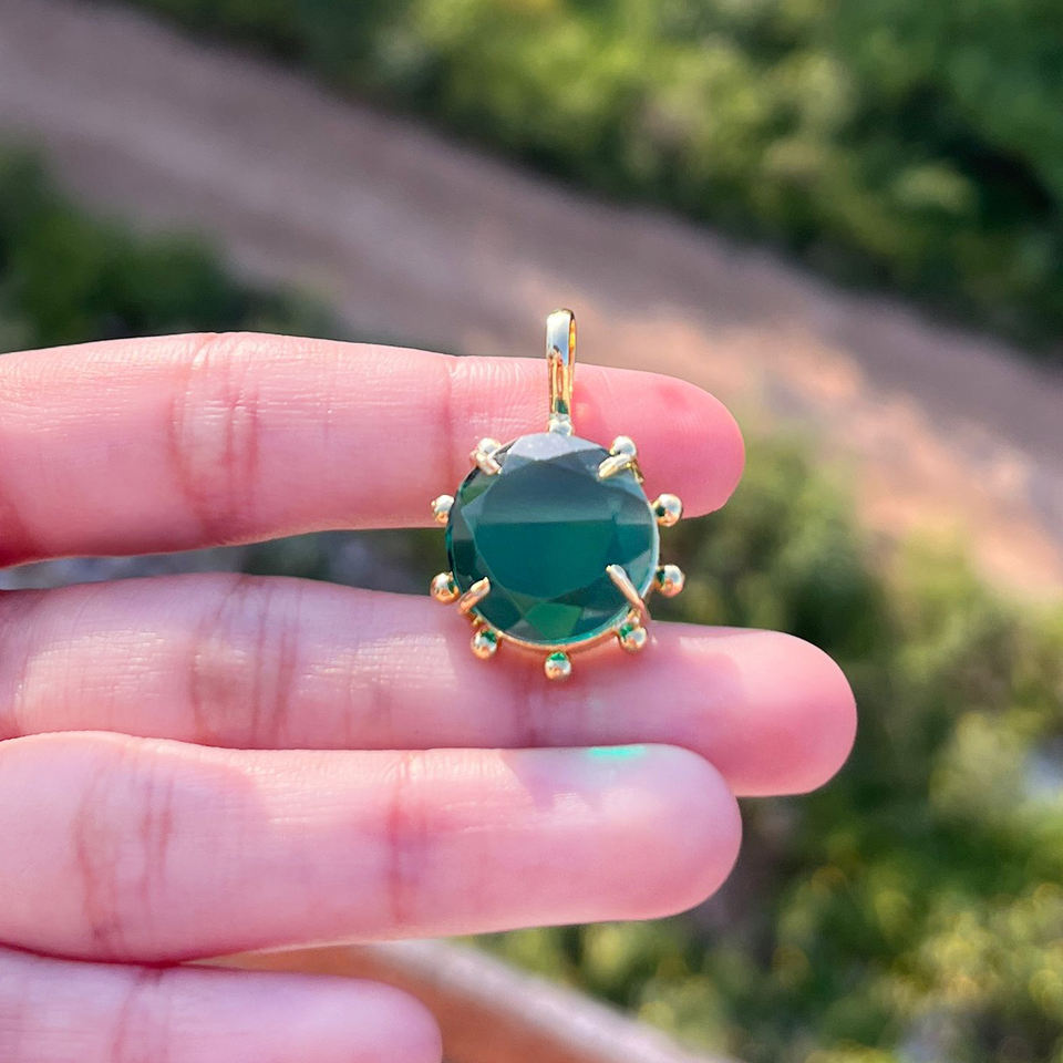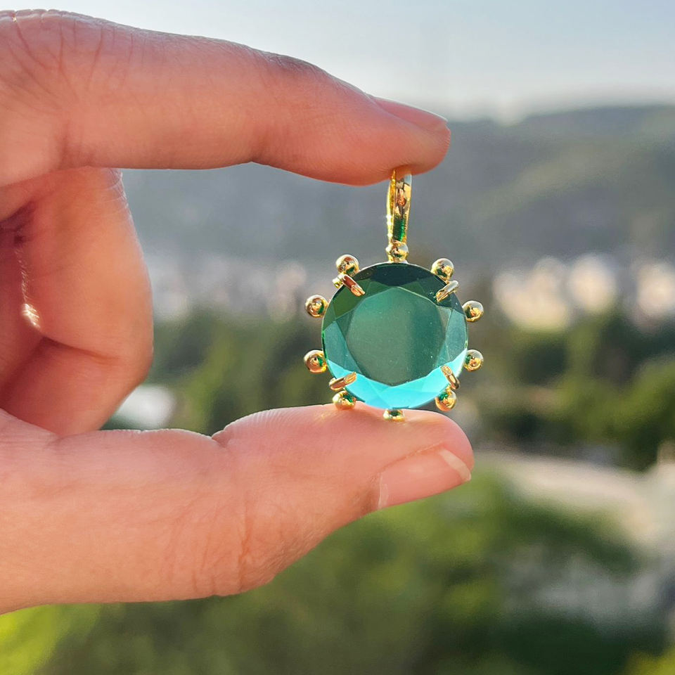 จี้พลอยควอตซ์ทรงกลมเจียระไนเหลี่ยมเพชรพลอยและจี้ประดับลูกปัดดีไซน์เนอร์ชุบทอง18K จี้ทำสร้อยคอ