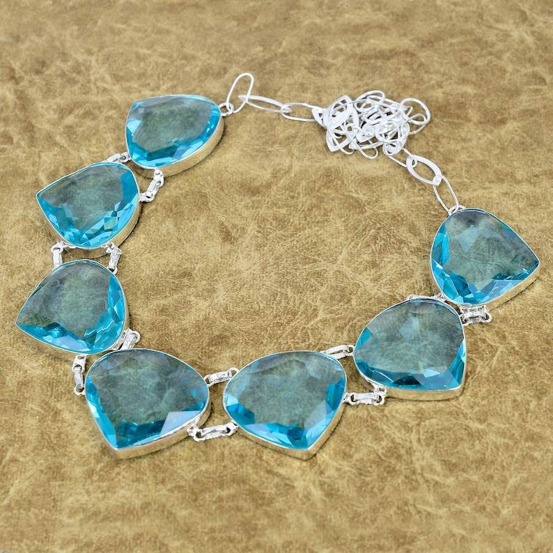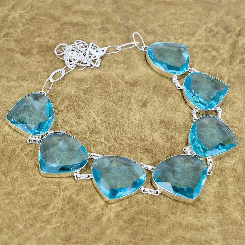 จี้โทแพซสีฟ้าประดับด้วยหินโทแพซสีฟ้าแวววาว