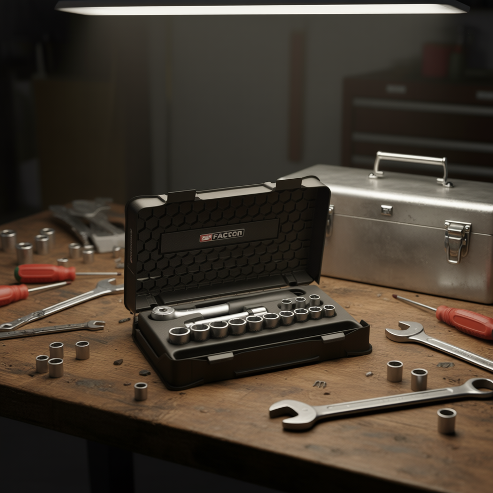 ชุดซ็อกเก็ตเฟคอม 1/2'' เมตริก 12 จุด ชุดเครื่องมือทนทาน 15 ชิ้น