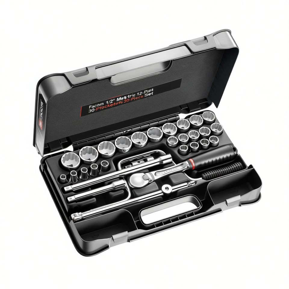 ชุดเครื่องมือเฟคอม 1/2'' เมตริก 12 จุด ชุดซ็อกเก็ต 30 ชิ้น
