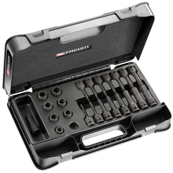 ชุดบล็อกหกเหลี่ยมแบบสั้น Facom 1/2 นิ้ว เมตริก 23 ชิ้น
