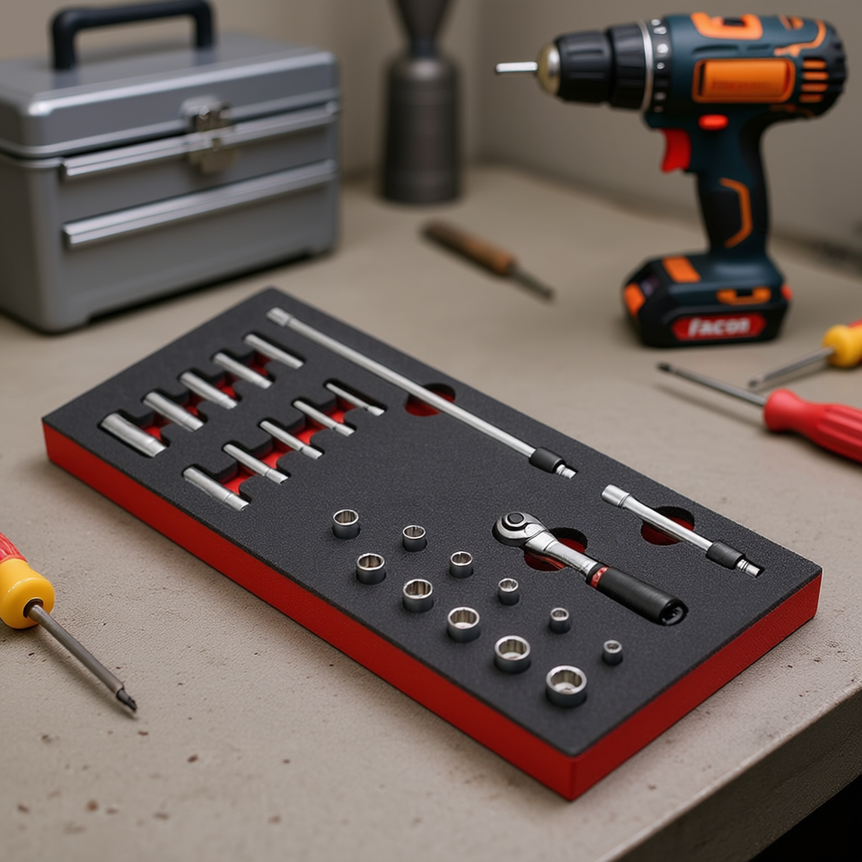 ชุดประแจวงล้อแบบล็อค Facom ขนาด 1/4 นิ้ว และซ็อกเก็ตขนาดนิ้ว พร้อมโมดูลโฟม ผลิตภัณฑ์ระดับพรีเมียม