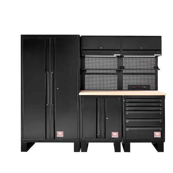 ชุดเฟคอม 1 ม. พร้อมตู้เก็บของด้านบนทำจากไม้ขนาด 2.45 ม. ตู้เก็บเครื่องมือ
