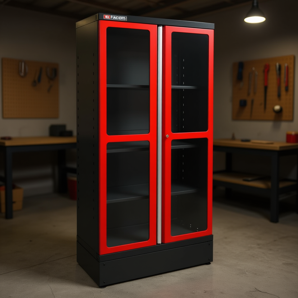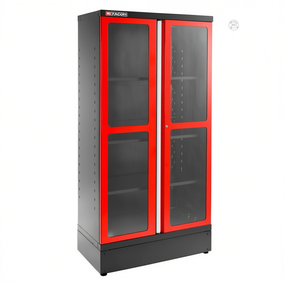 ตู้เสื้อผ้าสีแดง Facom ขนาด 2 เมตร พร้อมบานกระจก 2 บาน ตู้เก็บเครื่องมือ