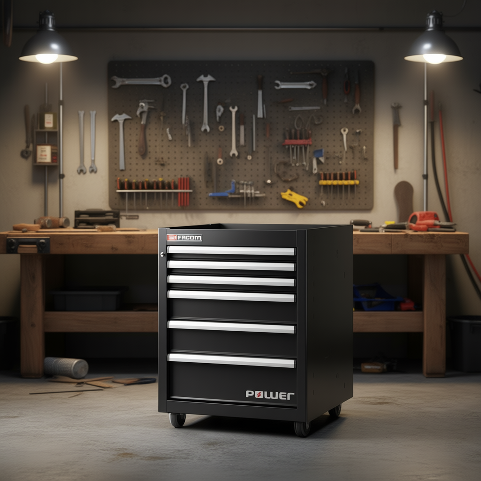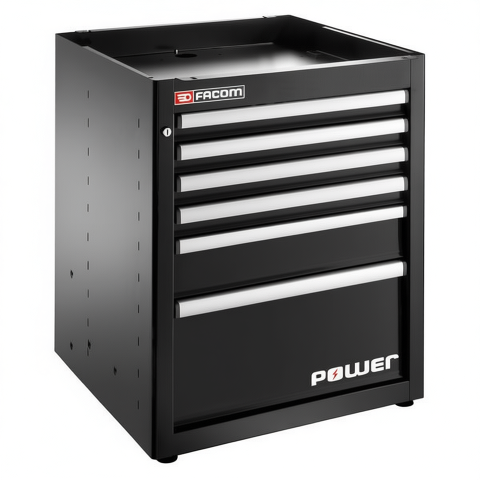 ตู้เครื่องมือ Facom สีดำ 6 ลิ้นชัก พร้อมลิ้นชักเก็บอุปกรณ์ 1 ช่อง ดีไซน์แบบตู้ฐาน