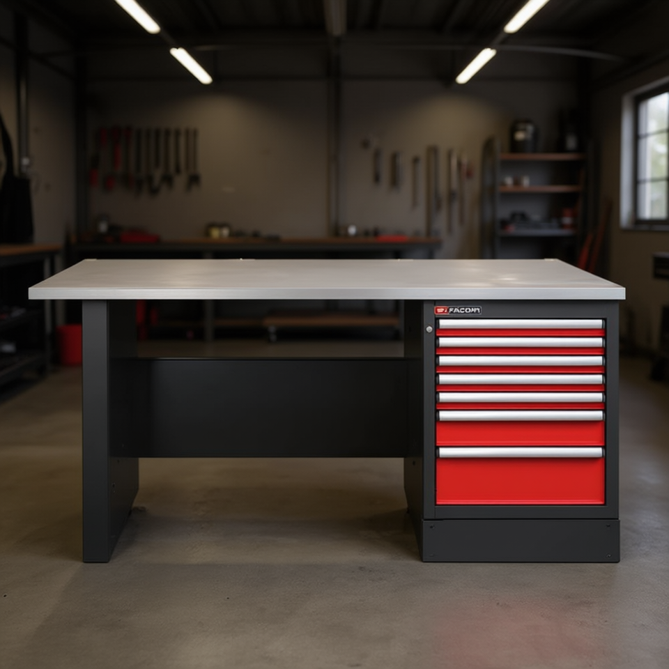 โต๊ะทำงานสูง Facom พร้อมตู้เก็บเครื่องมือ 7 ลิ้นชัก