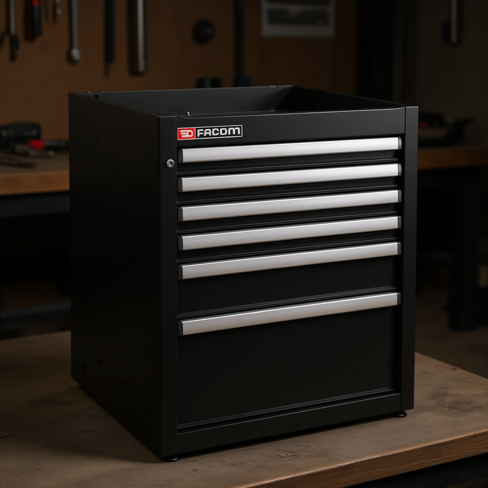 ตู้เก็บเครื่องมือแบบฐานเดียว Facom พร้อมลิ้นชัก 6 ช่อง สีดำ
