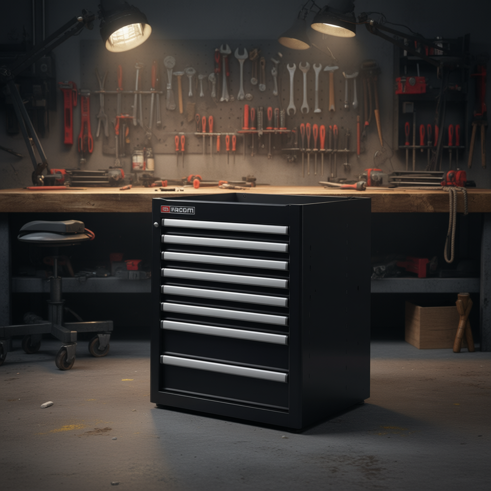 ตู้เก็บเครื่องมือแบบฐานเดียว Facom พร้อมลิ้นชัก 8 ช่อง สีดำ