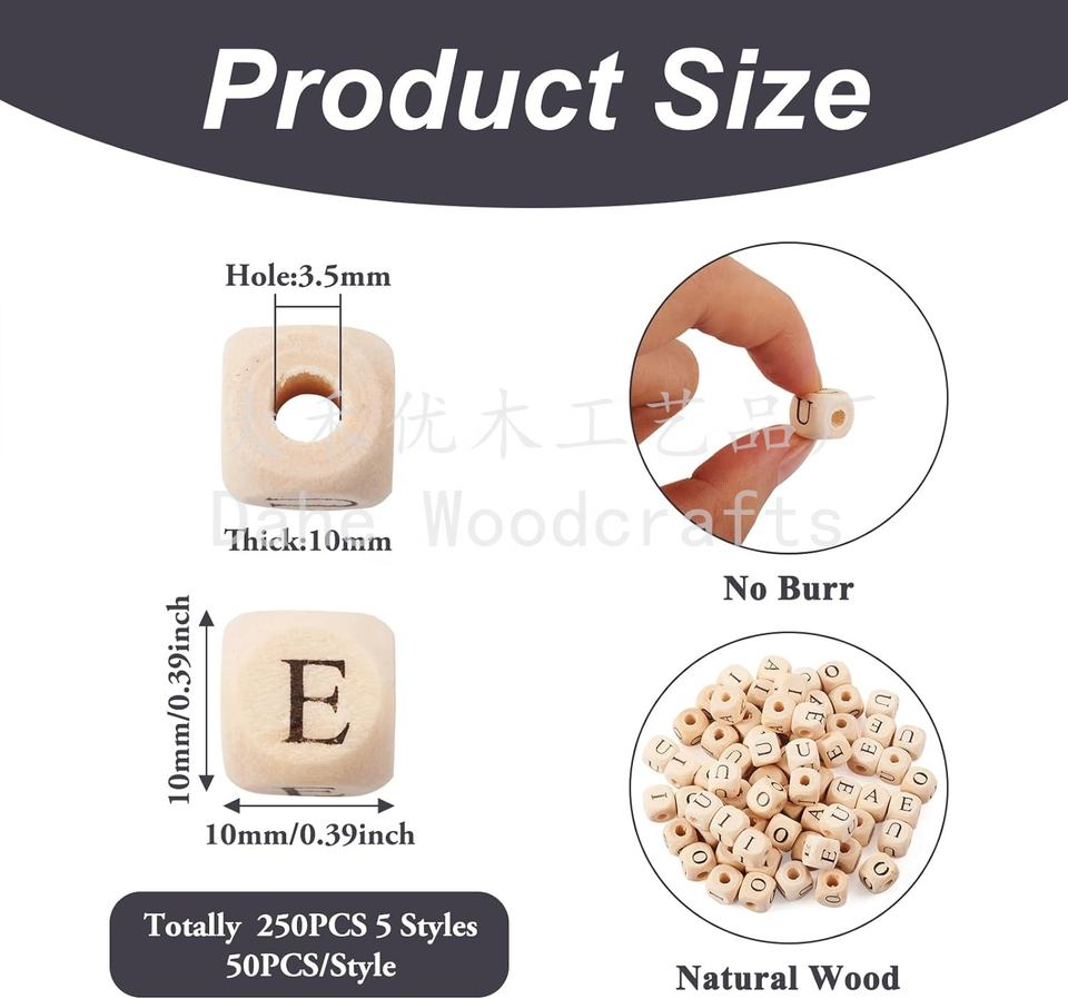 Product Name:10mm Cube Wooden Beads Square Wood Vowel Letter Bead