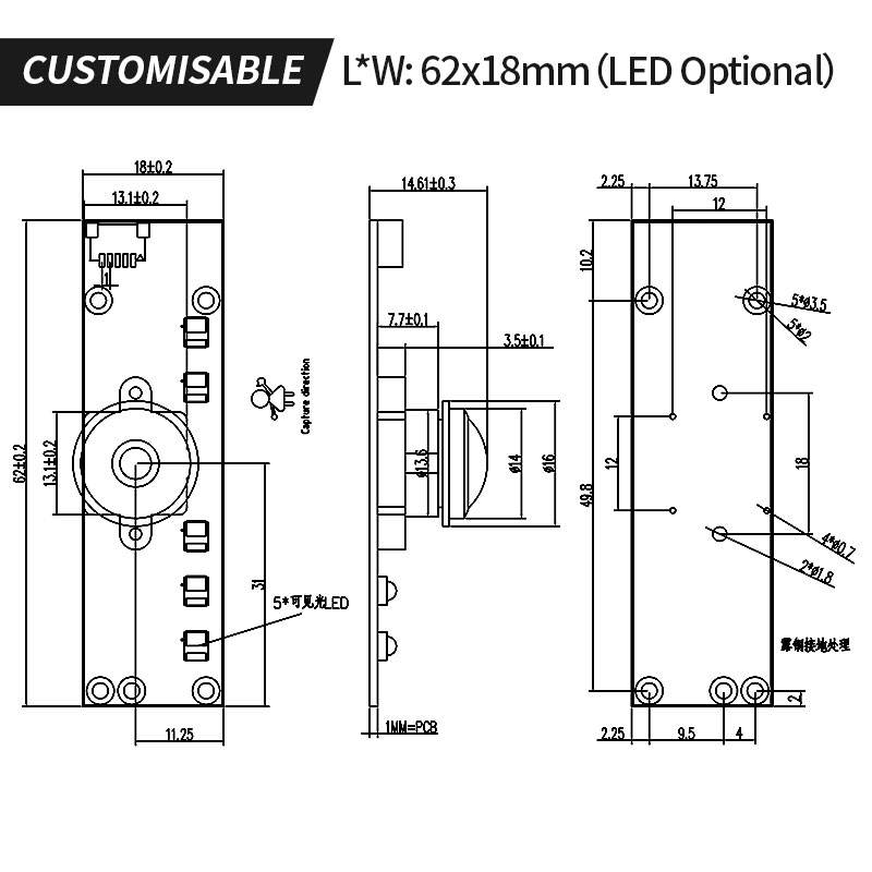 ขนาดโมดูล:62*18มิลลิเมตร (L * W)
