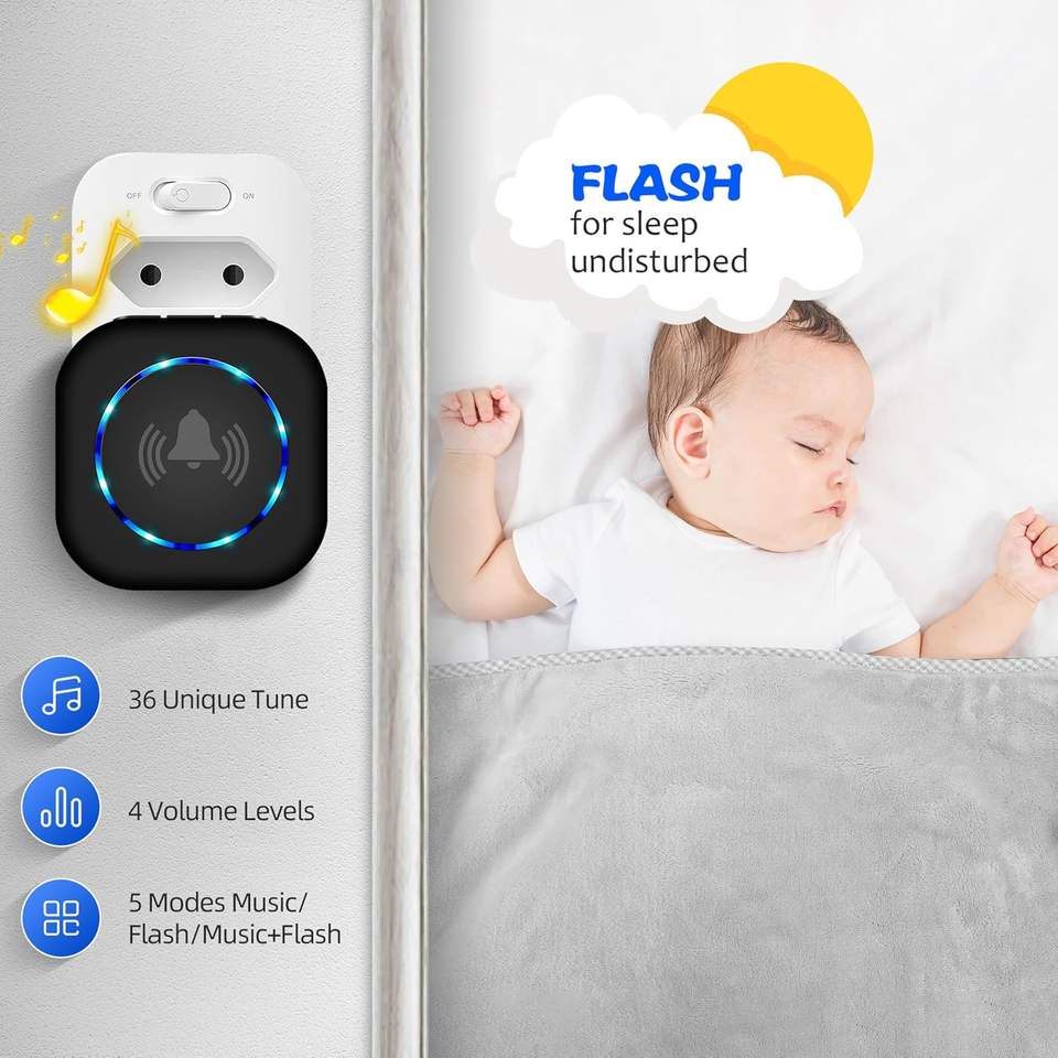 กริ่งประตูไร้สายแบบ 1 ต่อ 2 หรือ 2 ต่อ 2 ใช้แบตเตอรี่ ระยะไกล 300 เมตร สำหรับบ้านอัจฉริยะ พร้อมไฟ LED แบบเสียบปลั๊ก