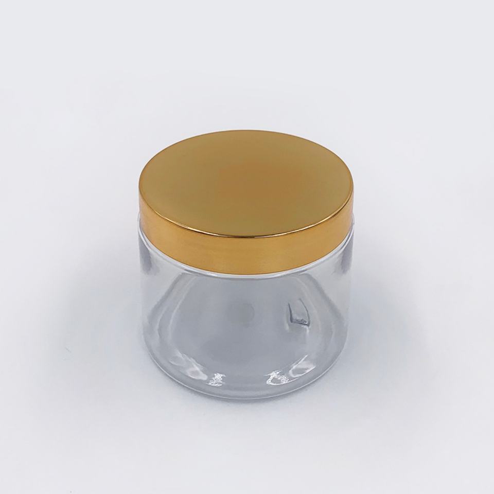 ขวดครีมเปล่าสำหรับเครื่องสำอางขนาด 2 ออนซ์ 4 ออนซ์ 8 ออนซ์ แบบขุ่นและใส วัสดุ PET พร้อมฝาสีทอง
