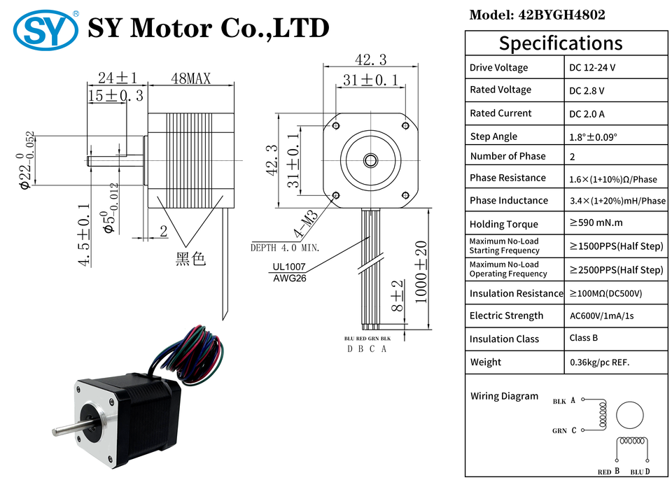 เส้นผ่าศูนย์กลางของเพลา:5มม. (ตัด D)